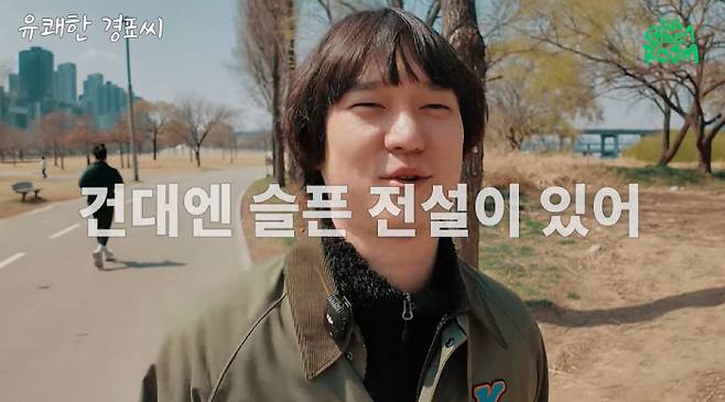 지나가면서 중앙대 학생들이 한강 잔디밭에 있는 것을 본 고경표는 "지금 공강인가?"라고 궁금해하면서 "제가 건대 09학번인데 건대에 슬픈 전설이 있다"고 운을 뗐다.