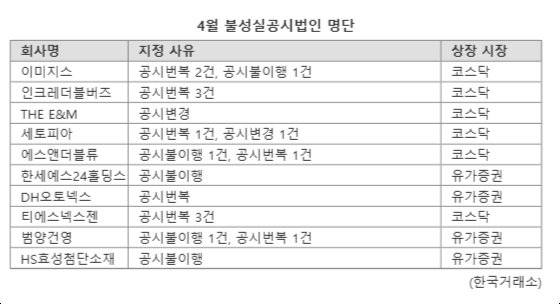 이달 불성실공시법인으로 지정된 기업이 10곳으로 지난 3월 한 달 동안 지정된 건수에 이미 도달했다.