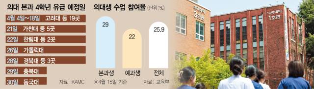 당국과 대학이 의대 교육 파행을 막기 위해 적극 나서고 있지만 의대 교육 정상화까지 가야 할 길은 요원하다. 현장에서 의대생 투쟁을 이끌고 있는 ‘대한의과대학·의학전문대학원학생협회’는 여전히 수업 거부 입장을 고수하고 있고 모집 인원 동결 이후에도 의대 본과생 수업 참여율은 이달 15일 기준 29%와 크게 다르지 않아 대규모 유급 사태 가능성도 배제할 수 없는 상황이다. 대한의사협회와 서울의사회 등 의료계에서 유급 처리에 반대 목소리를 내고 있는 만큼 유급이 현실화할 경우 의정 갈등이 심화할 수 있다는 분석도 나온다.