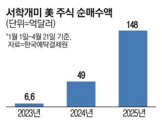 한편 서학개미들은 미국 주식뿐만 아니라 미국 채권에 대한 투자 규모를 크게 늘렸다. 올 들어 서학개미들은 미국 채권 상품을 35억달러(약 5조원)어치 순매수했다. 1년 전과 비교하면 43% 늘어난 금액이다.
