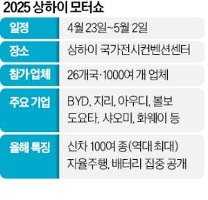이번 행사에서 처음 선보이는 신차는 스포츠유틸리티차량(SUV)과 전기차 중심으로 100종이 넘는다. 신차 공개 규모도 사상 최대다. 올해 상당수 중국 자동차 업체는 AI 기반의 자율주행 기술을 접목한 모델을 강조한다. 중국 자동차업계 관계자는 “유럽 등 다른 모터쇼 위상이 쪼그라들어 세계의 주목을 받고 있는 상하이 모터쇼에서 스포트라이트를 받으려는 전략이 많이 나온다”고 전했다. 이번 행사에선 여느 때와 달리 완성차·부품·테크 업체 수장이 처음으로 ‘리더 라운드 테이블’을 연다.