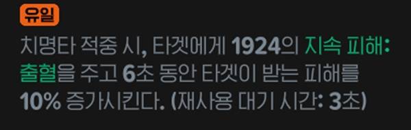 치명타 적중 시 6초간 적이 받는 피해를 10% 증가하는 디버프를 부여하고, 출혈을 거는 룬이다. 레이드가 어떤 식으로 나오냐에 따라 평가가 크게 올라갈 가능성이 있다.