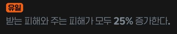 받는피해 25% 증가 패널티가 있지만, 상시 피해 증가 25%를 올려주는 매우 강력한 룬이다. 심플 이즈 베스트의 가장 대표적인 예시다.
