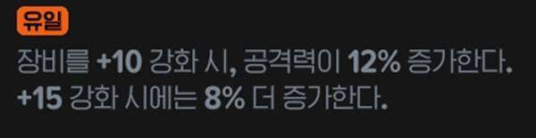 장비를 +10 강화 시 공격력이 12% 증가, +15 강화 시 추가로 8%가 증가하는 룬이다. 강화 수치만 적용되면 조건없이 상시로 공격력 증가 버프를 얻을 수 있다.