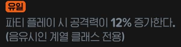 음유시인 계열 전용 룬으로 파티 플레이 시 상시 공격력이 12% 증가한다. 어비스 이후부터는 거의 대부분 파티로 돌기 때문에 상시 공증 혜택을 누릴 수 있다.