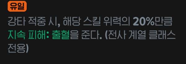 전사 계열 클래스 전용으로 강타 적중 시 스킬 위력의 20% 만큼 지속피해: 출혈을 가한다. 흡혈 룬과 함께 쓰면 매우 좋은 시너지를 낸다.