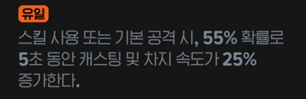 스킬 사용 또는 기본 공격 시 55% 확률로 5초 동안 캐스팅 및 차지 속도가 2% 증가하는 룬이다. 직접적인 피해 증가나 공격력 증가 효과는 없지만 대검전사와 같은 스킬 캐스팅이나 차지 시간이 긴 직업에게 좋은 룬이다.