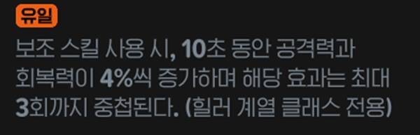 힐러 계열 전용 룬으로 보조 스킬 사용 시 10초동안 공격력과 회복력이 4%씩 증가하며 해당 효과는 최대 3회까지 중첩된다. 공격력이 회복력에도 영향을 미치기 때문에 상당한 효율을 낼 수 있다.