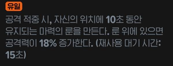 마력의 룬 범위가 생각보다 좁지만, 장착하고 있을 경우 파티원의 장판에도 적용이 되고, 18% 공격력 증가 자체의 상승폭은 매우 높은 편이라 충분히 메리트가 있다.