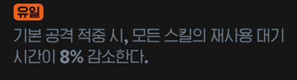 평타를 자주 쓰면서도 쿨타임 감소가 필요한 수도사나 빙결술사 등의 직업에게는 매우 필수적인 룬이다. 엠블렘 전설 룬 중 모든 스킬의 재사용 대시시간이 18% 감소하는 '지혜로움'이 있을 경우 우선순위가 조금은 내려간다.
