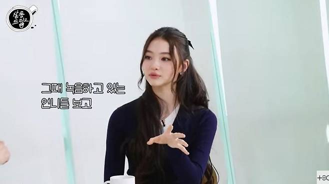 장도연은 '리틀 제니' 수식어를 언급하며 "블랙핑크 언니들과 어릴 때부터 관계를 유지했냐"고 물었고, 엘라는 "남동생만 있어서 어릴 때 언니가 갖고 싶었다. 언니들 녹음하고 있는 모습 보고 나도 나중에 (가수) 하고 싶다고 생각했다"고 떠올렸다.
