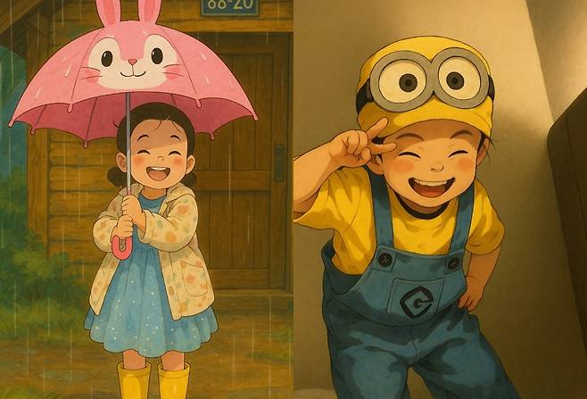 공개된 사진에는 최근 유행 중인 지브리 애니메이션 사진으로 변환된 두 아이의 모습이 담겨 눈길을 끌었다.