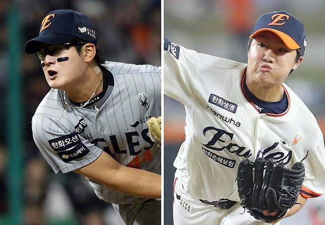 김서현을 필두로 ‘젊은 피’들의 활약이 돋보인다. 김서현과 마찬가지로 시속 150㎞ 이상 빠른 공을 던지는 고졸 신인 정우주(19·오른쪽)도 10경기(9.2이닝) 2홀드 평균자책 3.72로 데뷔 시즌부터 불펜에서 중요한 역할을 하고 있다.