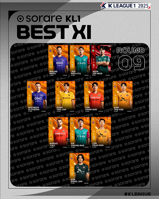 한국프로축구연맹은 9라운드 MVP와 베스트 매치, 베스트 팀, 베스트11을 22일 발표했다. MVP는 전진우가 받았다. 그는 지난 20일 전주월드컵경기장에서 열린 대구전에서 멀티골을 터뜨리며 전북의 3대1 승리를 이끌었다.