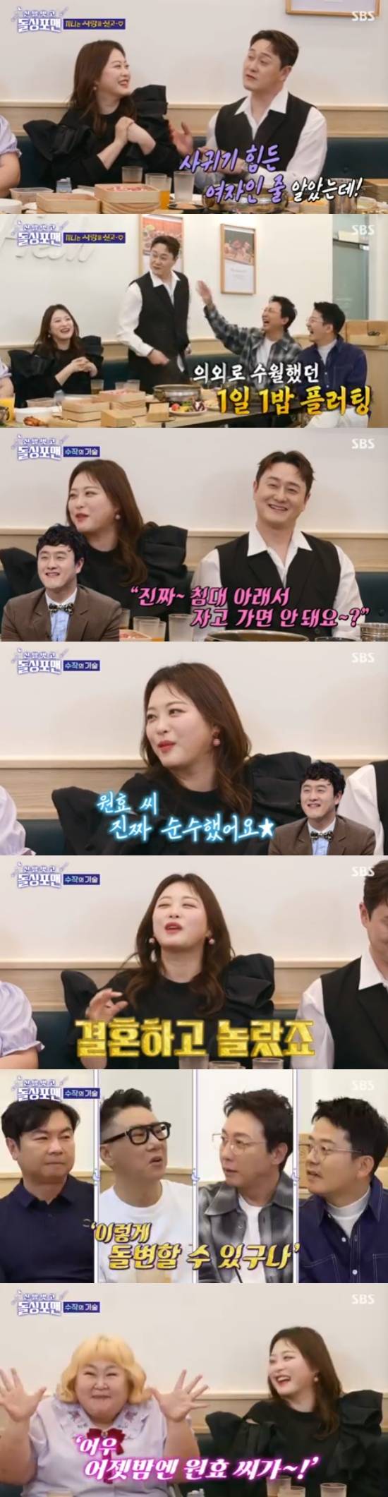 이어 "조개구이에 맥주를 마시면서 아침까지 먹었다. 그런데 맥주를 그렇게 마셔도 원효 씨가 저를 못 쳐다보더라. 그리고나서는 대리 기사님을 부르더라. 정말 손 한번 안 잡고 저를 집에 데려다 줬다. 굉장히 감동을 받았고, 사람이 다르게 보이더라"고 했다.