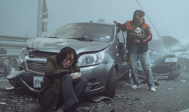 '탈출: 프로젝트 사일런스(이하 '탈출')'는 22일 오후 12시 기준 티빙 영화 순위 3위에 랭크됐다. 지난해 7월 12일 개봉한 '탈출'은 짙은 안개 속 연쇄 추돌 사고가 일어나고 붕괴 위기의 공항대교에 풀려난 통제 불능의 군사용 실험견들로부터 살아남기 위해 극한의 사투를 벌이는 사람들의 이야기를 그린 재난 생존 스릴러다. 배우 고(故) 이선균, 주지훈, 김희원, 문성근, 예수정, 김수안 등 실력파 배우들이 총출동했다. 김태곤 감독이 메가폰을 잡아 현실감 넘치는 재난 분위기를 연출했다.