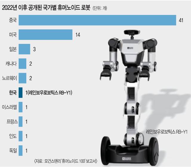 중국과 미국을 중심으로 글로벌 기업들이 인간형 로봇(휴머노이드) 개발에 뛰어드는 가운데 국내 기업들도 뒤늦게 기술 확보에 속도를 내고 있다. 그러나 2022년 이후 전 세계에서 공개된 66개 휴머노이드 가운데 국산은 단 1개에 불과해 시장 주도권 확보를 위한 기술 투자와 규제 개선이 시급하다는 지적이 나온다.