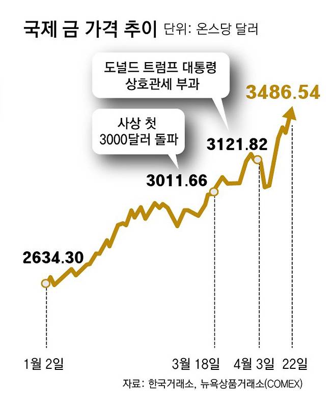 금값 3400달러 돌파하며 최고가
