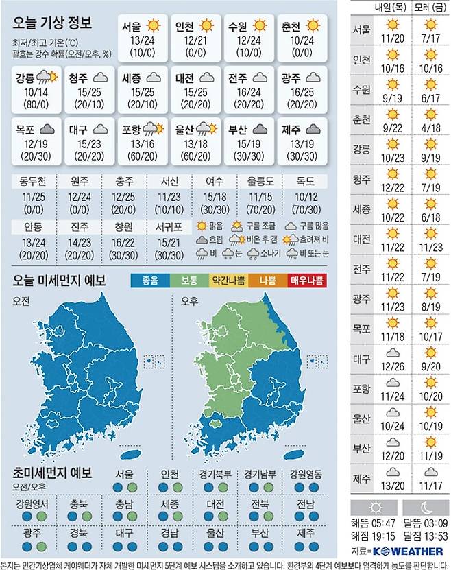 대체로 맑음, 전남·경남·제주 흐림