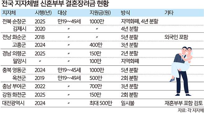 “결혼하면 1000만원”… 신혼부부에 축하금 주는 지자체는