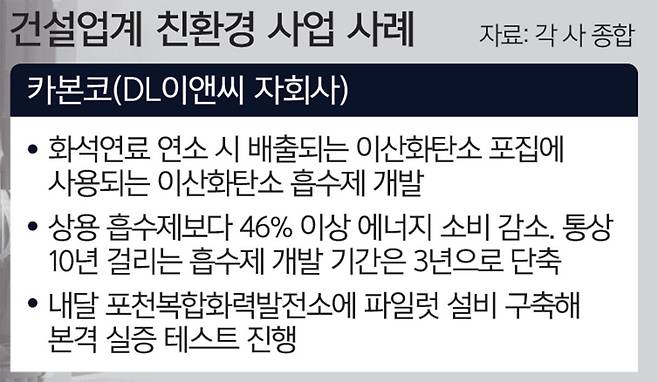 친환경 소재·공법을 활용한 건설뿐만 아니라 탄소 발생을 줄이기 위한 각종 기술 개발에 나서는 등 점차 영역을 넓혀가는 모습이다.
