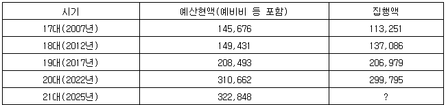 이는 당시 대선이 코로나19가 횡행하던 시기에 치러진 탓에 투표소 방역, 방역물품 제작 등 추가로 들어간 비용이 많았기 때문으로 풀이된다.