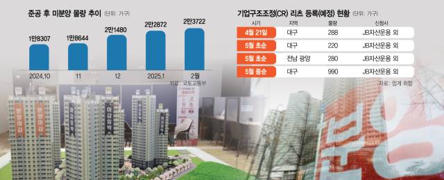 기업구조조정(CR) 리츠가 11년 만에 부활해 대구 지역의 준공 후 미분양 아파트를 사들인다. 이달 CR 리츠 1호 출범을 신호탄으로 리츠 3곳이 다음 달 대구와 전라남도 광양에서 총 1500가구 수준의 미분양 물량을 추가 매입할 예정이다. 국토교통부와 부동산업계는 부산과 경북 경주 등에서도 CR리츠의 하반기 출시를 통해 현재 2만 3000여 가구까지 늘어난 ‘악성 미분양’ 물량 중 상당수를 소화할 것으로 기대하고 있다. ★본지 3월 26일자 22면 참조