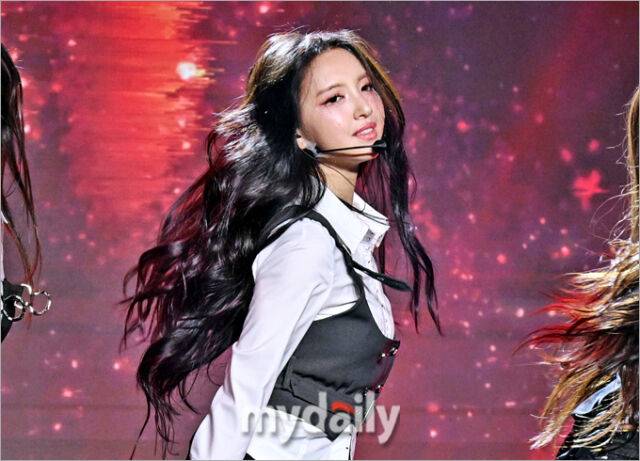 큼지막한 눈망울과 허리까지 내려오는 긴 웨이브 헤어에 가녀린 몸으로도 강렬한 안무를 소화하면서도 중간중간 청순미 넘치는 미소로 완벽한 비주얼 매력을 뽐냈다.