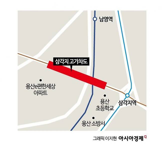 삼각지 고가도로는 국내 최초의 입체교차로다. 경부선과 지하철 1호선 철로 위로 다닐 수 있도록 1974년 완공돼 50년 넘게 시민들이 사용했다. 1968년 준공돼 1994년 철거된 삼각지 입체 교차로와 함께 용산구와 마포구를 이어주는 역할을 하기도 했다.