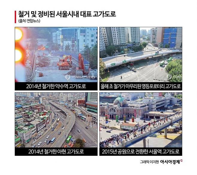 1990년 중반대에 서울시가 시내 고가도로를 철거하기 시작한 것도 이 때문이다. 1968년 9월 준공된 서울지역 최초의 고가도로인 아현 고가도로는 2014년 철거됐다. 고가도로 진입 전후로 병목현상이 빈번했던 데다 시설 노후화로 유지 관리에 한계가 드러났다.