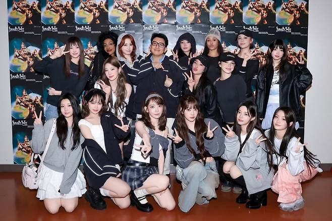 하이브 소속 걸그룹들이 한자리에 모인 드문 장면이지만, 현재 하이브와 갈등을 빚고 있는 뉴진스는 사진에 포함되지 않았다.