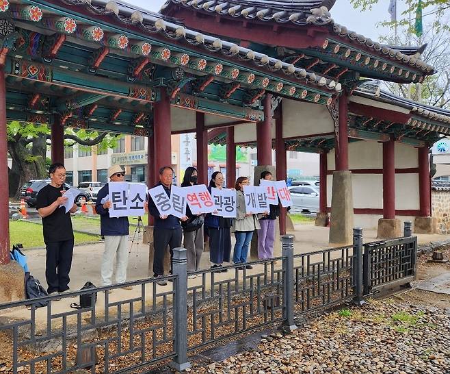 이와 관련, 예산홍성환경운동연합은 지구의 날로 지정된 지난 22일, 홍성군청 앞에서 기자회견을 열고 홍성군은 탄소중립과 배치되는 관광개발 사업을 중단하고 미래세대에게 물려줄 지역의 자연환경을 보전할 것을 촉구했다.