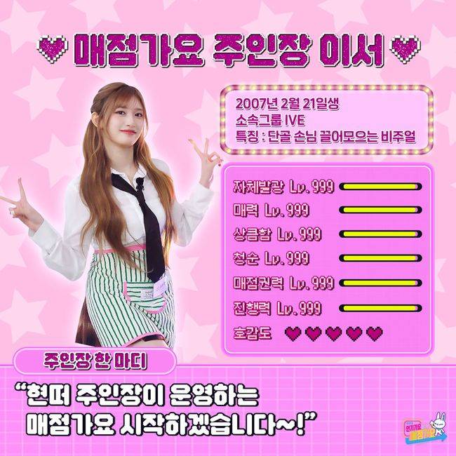 아울러 이서는 '인기가요'에 이어 '인기가요'의 스핀오프 웹 예능 '인기가요끝나면매점가요'(이하 '매점가요')의 매점 주인장으로도 활약하고 있다. 최근 첫 손님으로 소속사 후배 그룹 키키(KiiiKiii)를 맞이한 가운데, 이서는 다채로운 코너를 진행하며 이들이 자연스럽게 매력을 뽐낼 수 있도록 도왔다.