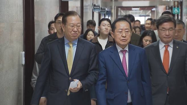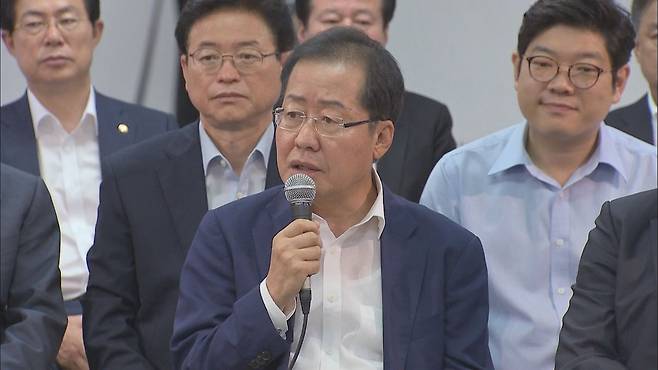 그날 질문 가운데 보수 진영의 가장 큰 관심 사항인 한덕수 국무총리 출마와 관련해 단일화 문제를 묻자, 홍 후보는 이렇게 답했습니다.