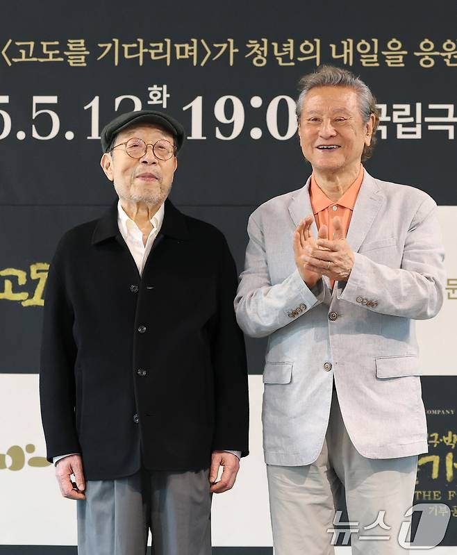 신구(89)와 박근형(85)의 연극 '고도를 기다리며'는 청년을 위한 특별 기부 공연으로 기획됐다. 티켓 수익금은 '자신만의 고도'를 기다리는 청년 연극인들을 지원하기 위한 <연극내일기금>으로 전액 기부된다. 2025.4.23/뉴스1