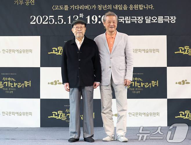 신구(89)와 박근형(85)의 연극 '고도를 기다리며'는 청년을 위한 특별 기부 공연으로 기획됐다. 티켓 수익금은 '자신만의 고도'를 기다리는 청년 연극인들을 지원하기 위한 <연극내일기금>으로 전액 기부된다. 2025.4.23/뉴스1