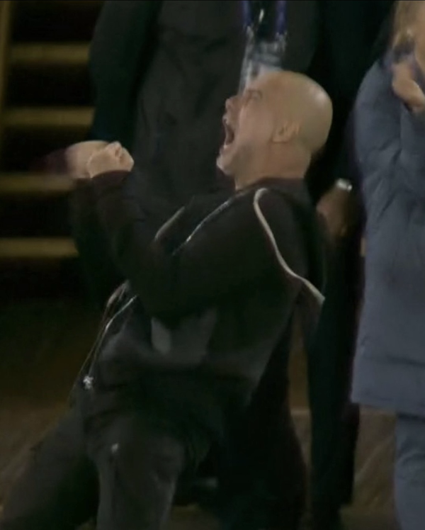 이번 시즌 최악의 부진으로 인해 머리를 긁어 상처를 내고, 매번 침울한 표정으로 기자회견에 임했던 모습과는 180도 달랐다. 오랜만에 아이처럼 환호하며, 기쁨을 누린 펩 감독이었다.