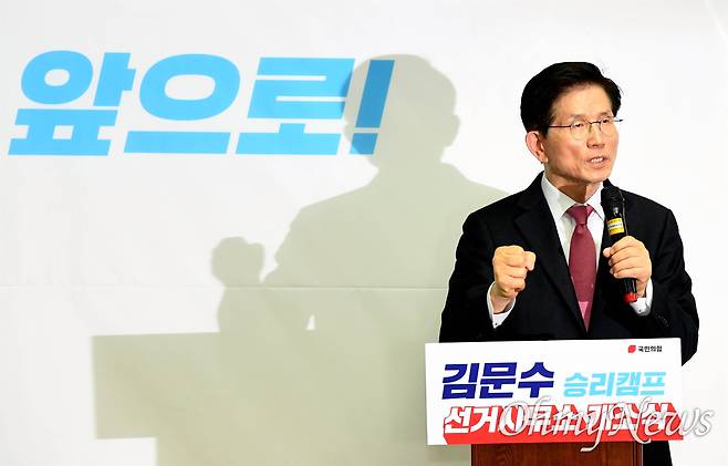 | ▲ 김문수 선거캠프 개소식 국민의힘 김문수 경선후보가 지난 17일 오후 서울 여의도 대하빌딩에서 선거사무소 개소식을 갖고 각오를 밝히고 있다. |