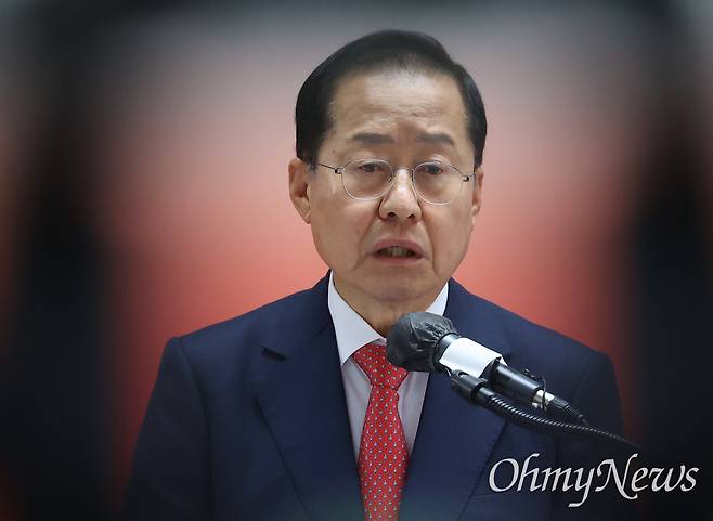 | ▲ 국민의힘 대선 경선 후보로 나선 홍준표 예비후보가 23일 오전 서울 여의도 선거사무실에서 '선진대국시대 비전발표회’를 열어 “반이재명 전선의 모든 세력과 정치연대를 통해 대연정을 실현하고 전혀 새로운 나라 선진대국을 이끌어 갈 통합정치세력으로 키워나가겠다”라고 국민통합 비전을 제시했다. |