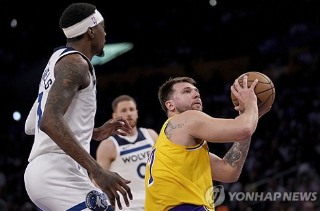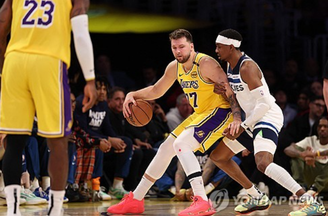 [NBA PO] '루카 매직' 30+점 트리플더블급 화력 터졌다! LAL, 미네소타에 반격 성공…시리즈 원점