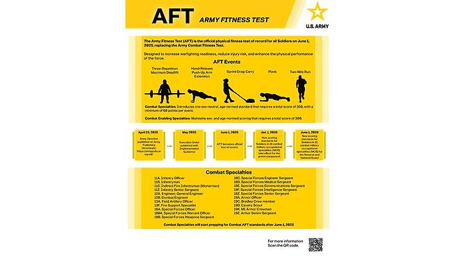미 육군은 전투 병과 병사가 각 종목에서 최소 60점, 5개 종목 총점에서 최소 350점을 받아야 한다고 설명했습니다.