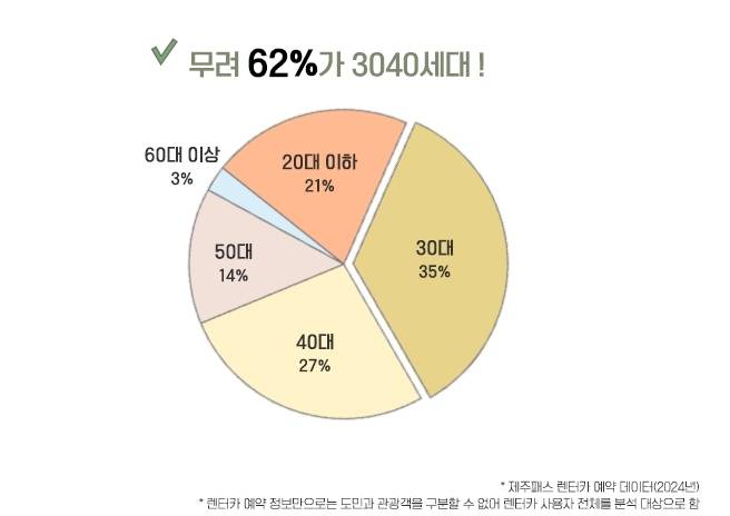 렌터카 예약 데이터 분석 결과 렌터카 이용을 이끄는 주력층은 3040세대로 전체 이용자의 62%를 차지했다.