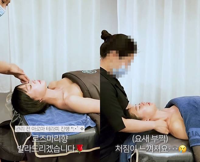 클라라는 아로마를 고른 뒤 침대에 누웠고, 에스테틱 담당자에게 "비행기를 요즘 너무 많이 타서 어깨랑 허리랑 전신이 다 아프다"라며 털어놨다.
