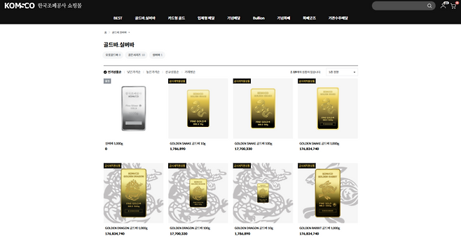 [한국조폐공사 쇼핑몰 홈페이지 갈무리]