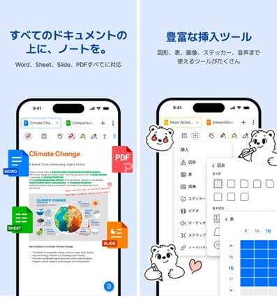 폴라노트는 기기와 환경에 구애받지 않는 유연한 사용성을 제공한다. 워드, 엑셀, 파워포인트(PPT), PDF 등 다양한 문서 위에 직접 필기할 수 있다. 멀티뷰·자동 썸네일 기능을 통해 자료 수집과 정리에 도움을 준다. 도형 삽입, 표 작성 등 콘텐츠 품질을 높이는 편집 기능도 들어있다.
