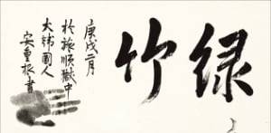 '綠竹(녹죽·푸른 대나무) 庚戌二月(경술년 2월) 於旅順獄中(뤼순감옥에서) 大韓國人(대한국인) 安重根書(안중근 쓰다).'