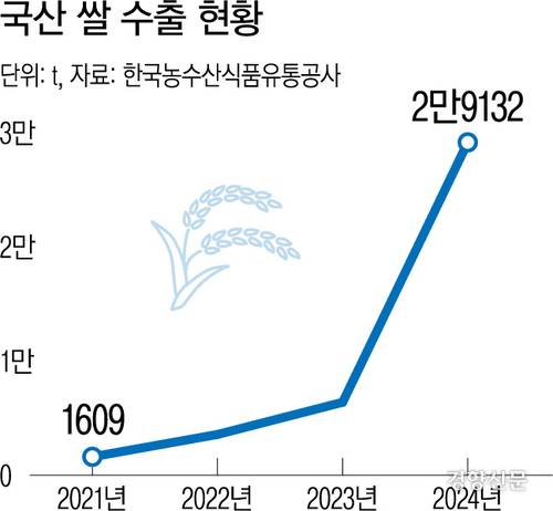 지난해 국산 쌀 수출이 K-푸드 열풍 등에 힘입어 전년 대비 4배 넘게 증가한 것으로 나타났다. 정부는 국내 쌀 소비 감소에 대응하고 ‘수출 영토’를 확대하기 위해 연내 고품질 쌀 생산단지를 조성하기로 했다.