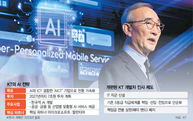 KT(030200)가 인공지능(AI) 인재를 확보하기 위해 개발자 급여 상한을 전격 폐지했다. AI 고도화를 실현할 수 있는 우수 인력이 갈수록 귀해지고 있는 만큼 파격적인 인사 제도를 시행한 것으로 분석된다. 김영섭 대표가 ‘AICT’ 기업으로의 변신에 속도를 내기 위해 과감한 인재 투자에 나선 것으로 풀이된다. 이에 따라 네이버·카카오·쿠팡 등 플랫폼 기업을 선호하는 개발자 구직 시장에서 KT의 존재감이 커질 수 있다는 관측이 나온다.