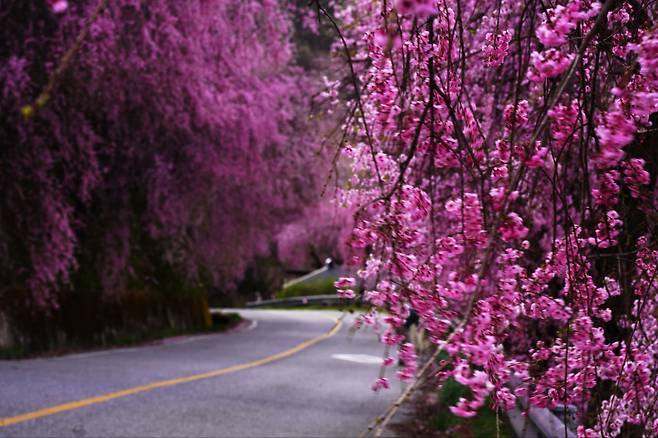 ◆북상면 병곡마을 능수벚꽃길, 봄꽃 절경으로 관광객 ‘북적’
