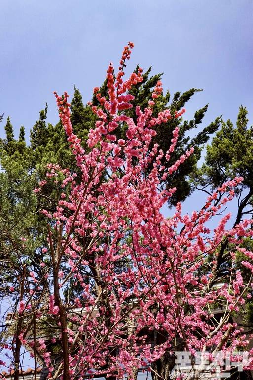 붉은 매화가 한창이고, 살구나무 꽃도 거리를 환하게 밝힙니다.